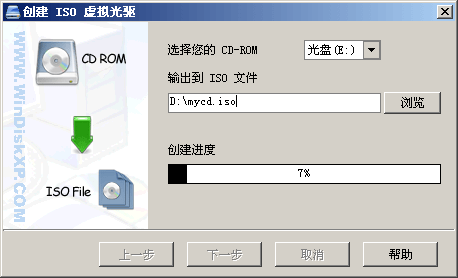 - 进入第二步,您可以看到 WinDiskXP 正在为您制作 ISO 虚拟光驱文件,等待制作完毕即可
