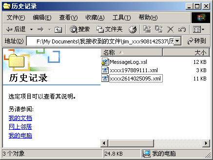 备份好上面目录例如:F:\My Documents\我接收到的文件\jim_xxx908142537\历史记录