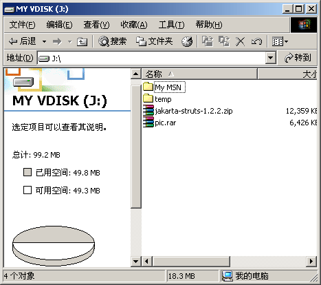 - 创建完毕后,虚拟硬盘便可以用了,下面是设置 MSN 了。把 MSN 的聊天纪录存储文件夹指向虚拟硬盘中,