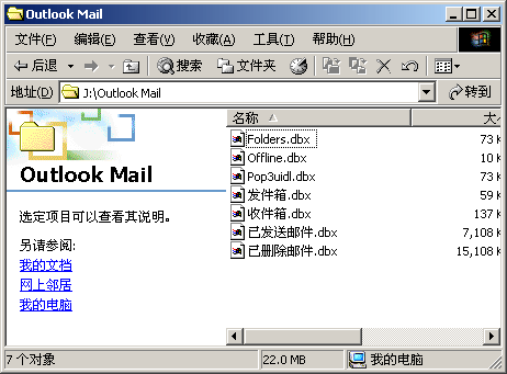 J:\Outlook Mail 目录下面的文件复制到其他地方,以免给 outlook 覆盖了,当然如果如下图J:\Outlook